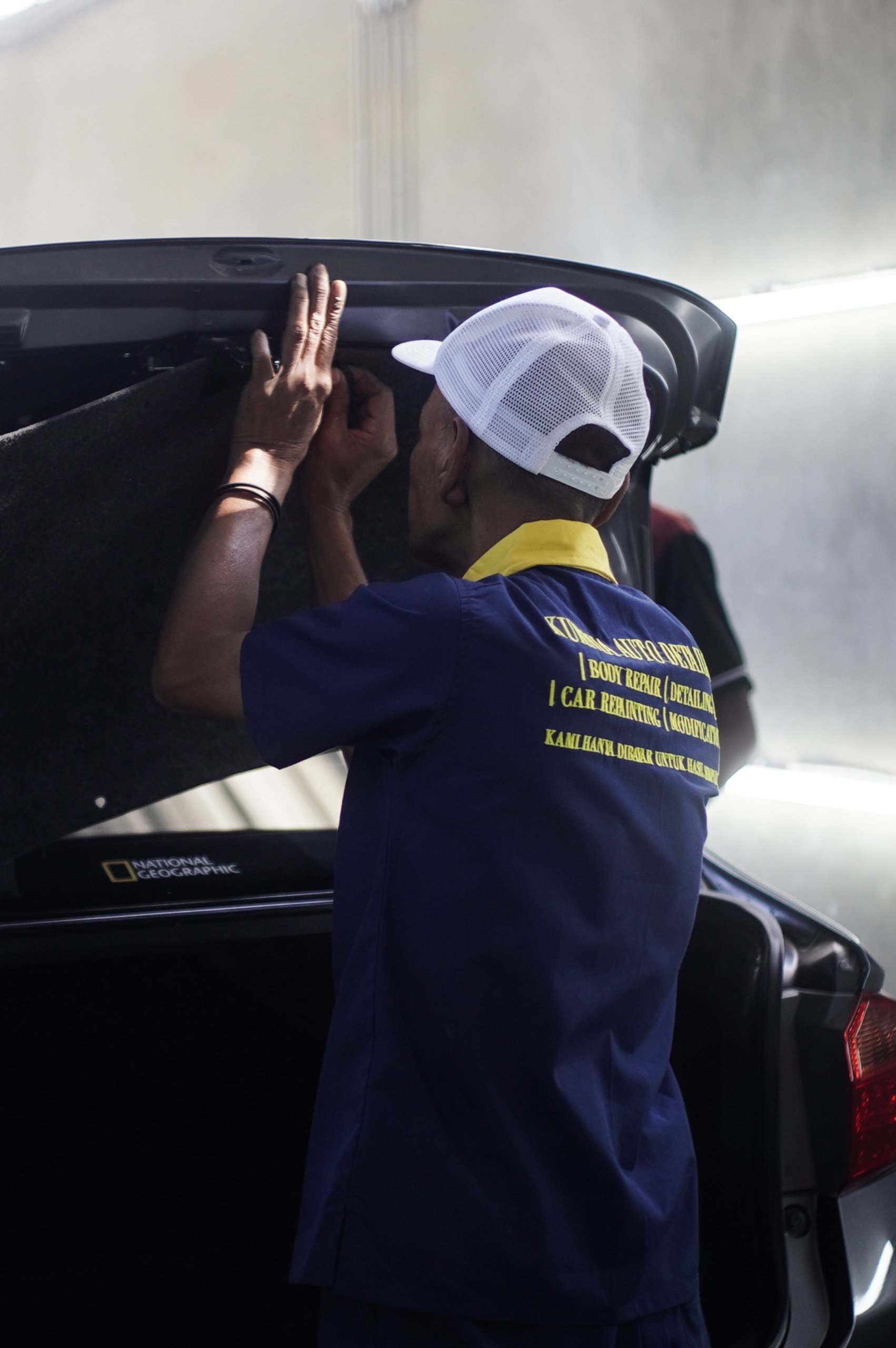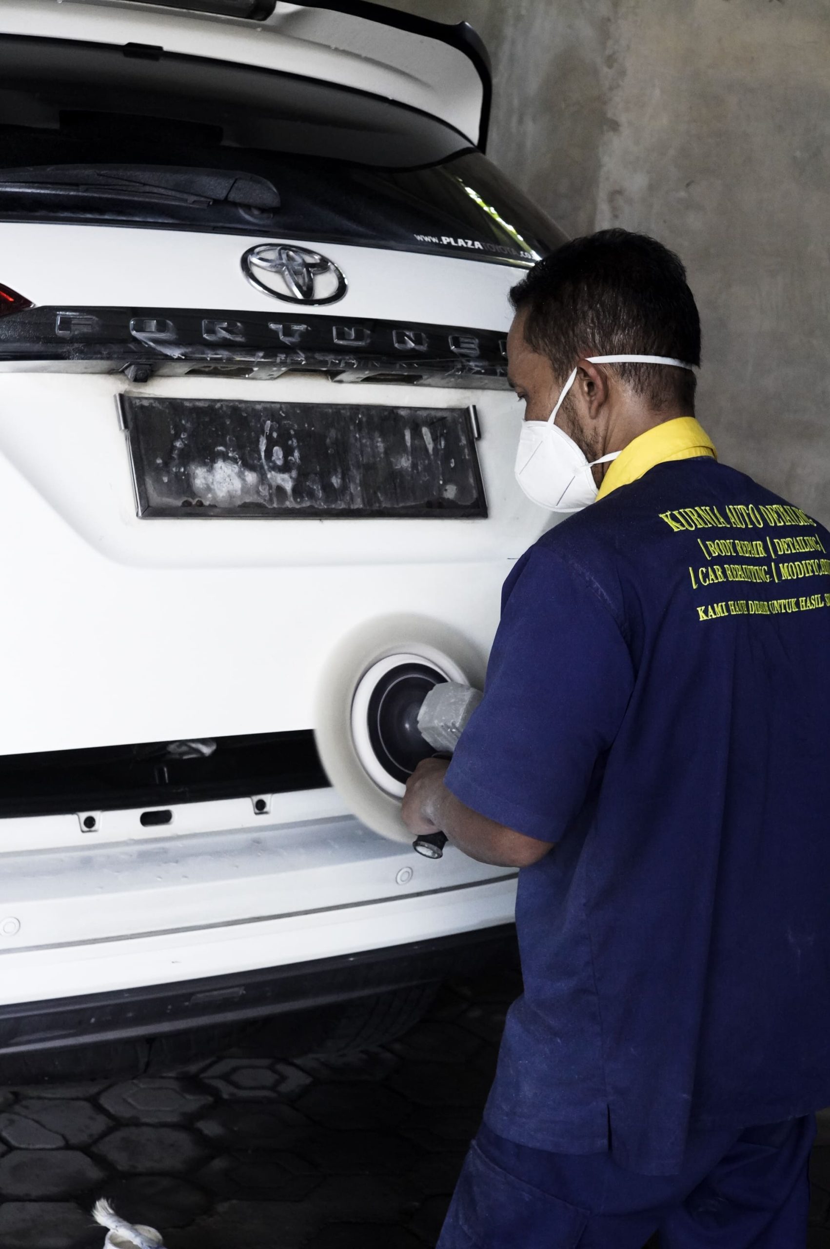 Kami adalah profesional di bidang body repair, car repaint, dan detailing dengan kemampuan untuk mengembalikan bentuk bodi, warna cat, dan kilau cat kendaraan sehingga tampak seperti baru.